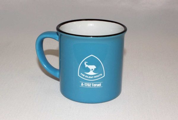 Taza cerámica de aspecto vintage en azul y blanco.  Capacidad 330 ml.